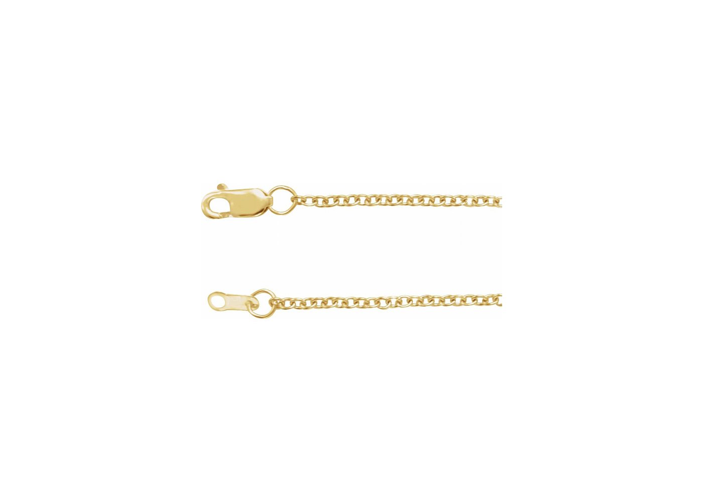1.5mm solid cable link, 5% of the material is 14k gold, bonded over brass (5% is a lot more compared to electroplating / dipped CRAP out there), finished with a lobster clasp. 7" is the standard length, but custom lengths can be ordered.
